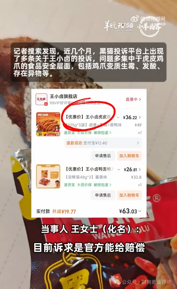 故事的最后,据了解,王小卤品牌方已经与王女士联系并进行了赔付,王女士也撤回了之前的帖子,并鼓励大家遇到问题要及时维权。这算是一个相对圆满的结局。